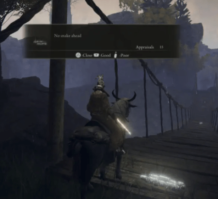 “Just in case you, like me, wonder if Elden Ring might pull a Sekiro-like snake jumpscare every time you cross a long bridge, this helpful message should set your mind at ease.”
