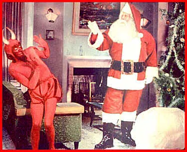 Santa berates the devil for his fashion choices.