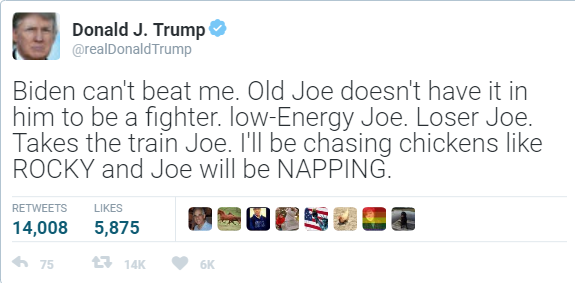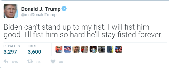 “Joe Biden? I’ll fucking fight Joe Biden!” Donald screamed into his phone.