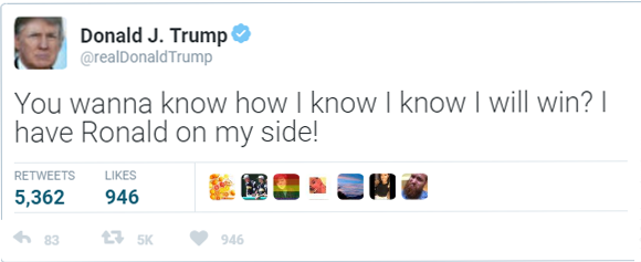 “Cheeseburgers,” Donald replied. “I need lots of cheeseburgers. I need to bulk up for the fight.”