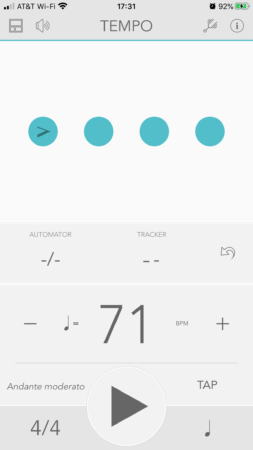 Seriously. If you want to be good, you will get a metronome. I don’t know any professional musicians who don’t practice with them. I’ve known some wannabes who claim to have a metronome in their head. Whatevs. They never do. There are few things more annoying than playing with someone who can’t keep a beat – and usually don’t even realize it – because they don’t practice with a metronome. There are myriad apps to put on your phone, some are free. Get one with a tap function; that’s important and I’ll explain in a bit. Below are an example of a phone app and an image of the “real” one that I use.