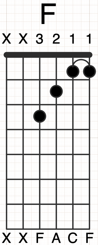 Song. Chart. It’s the F chord that’ll throw you. (And it’s in 6/8 time. I’ll leave you to it to figure out how to get your metronome to deal with that time signature. Hint: you could tap the 1&4 beats and not change from the 4/4 time signature.) I’d use the F chord voicing on the left below to match the recording, but the one on the right will pass if it’s easier for you, and it will add a little color. Follow the steps. You got this!