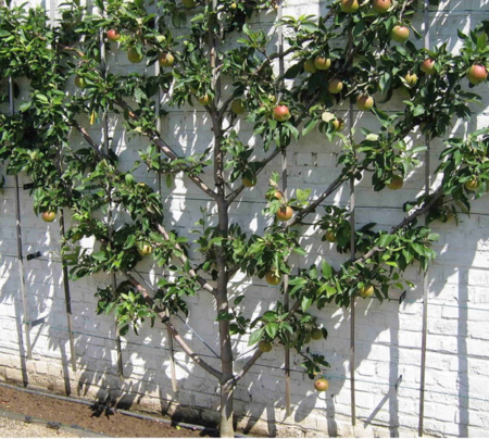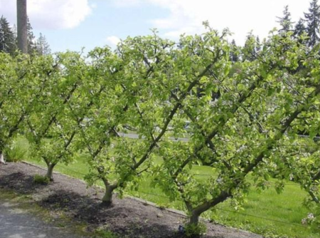However, one of the peasants that work your fields figures out how to plant trees close together; grow the branches at an upward angle; and then weave the branches from adjacent trees into a basketweave of sorts. These trees become self-supporting and do not require a trellis. When planted in long rows, the trees become living fences separating fields from each other and from roads. And these fences produce high-quality fruit.