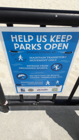 On the way out to the sand, I noticed that signs warning beach-goers of the restrictions on activity on the beach had not been taken down.