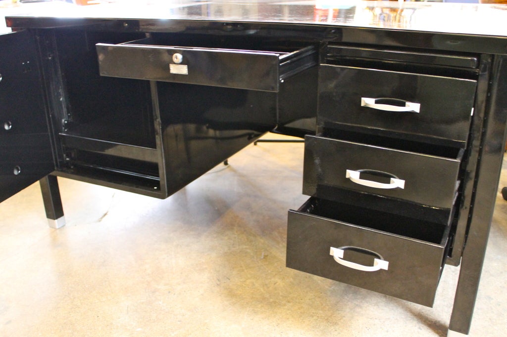 A Steelcase government issue desk from the Eisenhower administration. Those things will not die, and often find their way into janitorial spaces in government buildings.