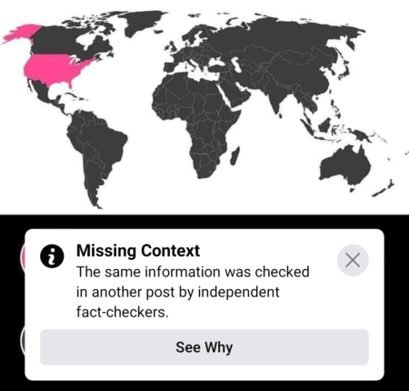 Remember that shoddy little map from last week? Countries with “rocket dicks in space” (pink) vs countries with universal healthcare (black). Apparently that was too egregious for even FB, but notice how they said it was “missing context” (which it’s not) instead of just plain wrong (which it is on many levels).