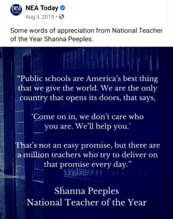 Yeah, it’s from 2015, but still – barf. Also, Shanna didn’t get the memo that America was racist and hated immigrants, particularly those of color. Unless she meant that only enlightened, virtuous teachers at government schools  “deliver on that promise.” In the comments tell us what you think is the best thing that America has given the world.
