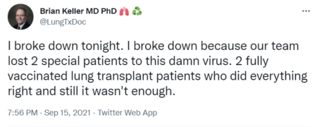 TWO PERFECTLY HEALTHY LUNG TRANSPLANT PATIENTS DIE WITH COVID-19: And whatever you do, don’t read the comments to this tweet. You know these people are just salivating at the thought of witholding treatment from the unvaxed. (h/t Sloopyinca)