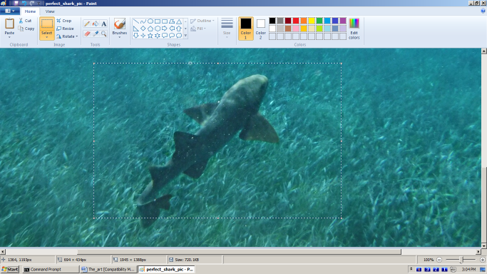 So what you want to do is draw a rectangle with an aspect ratio of 1.6 centered over the important part of the image. Some image editors make this trivially easy, others make it frustratingly difficult. For this example I’m going to use the most primitive image editor I have which is the ancient version of Microsoft Paint on my ancient Windows 7 computer.