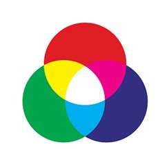 The CMYK color printer system is called “subtractive” because mixing ink colors produces a darker result on a white background. Light emitting screens use an “additive” system, complementary to CMYK, called RGB for Red, Green, and Blue where mixing light (as in ray) colors produces a lighter result on a black background: