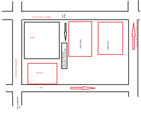 We made it back to the vicinity of the house without issue. Parking on the street next to the house was full. So, Nathan turned down the alley to park behind the house. But the driveway was full. We kept going down the alley and were going to make a full loop around the block. We could go farther up the side street to find more parking. When we pulled out of the alley, I saw the cop car down the street. Being that we only had one headlight, I started to get concerned. He was well over a 1/3rd of a mile away, but I’m sure he saw us.