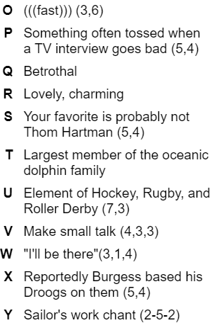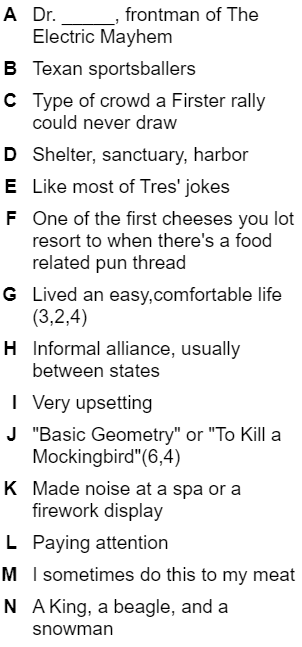 It’s the start-ish of the new year and many people’s thoughts turn to resolutions or goals. I don’t really make resolutions but I have a long standing goal of reading one book a week and at least one non-fiction book each month. I’ve never made it an entire year, in 2022 I only read 32 books and an embarrassing dearth of non-fiction. I don’t usually have a problem finishing a book in seven days where I fail is when I lose interest in reading altogether and go a few months not reading anything. Do you make reading goals, how do you keep your interest in reading going if/when it wanes? Enjoy this Glibcrostic and leave your answers in the comments, or don’t…you know…free country and what not.