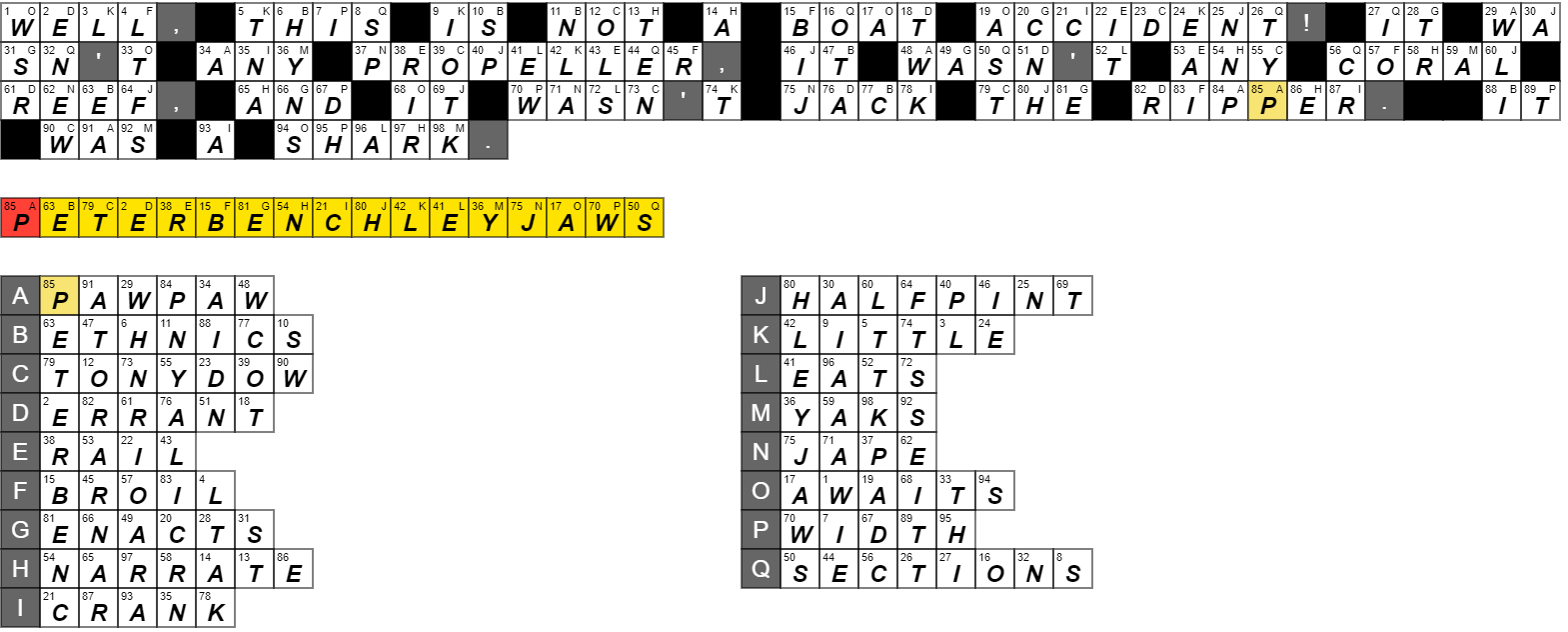 Everyone bitches about the shitty big screen adaptation of their favorite book(s), but there’s got to be at least one that didn’t suck. Is there a movie that did a book justice? Enjoy this Glibcrostic and let us know in the comments, or don’t, go ahead and make a few puns about cheese or fish or whatever you jerks feel like doing.