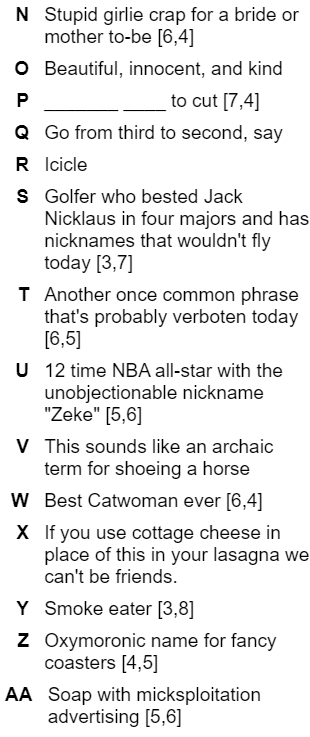 Just realized that clue Z should be ‘redundant’ not ‘oxymoronic’, did I mention I was drunk when I clued this?