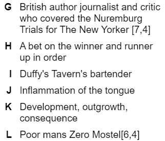 I’m generally pleased if I can get two or three of the clues before giving up, which I did this week. I enjoyed the quote.