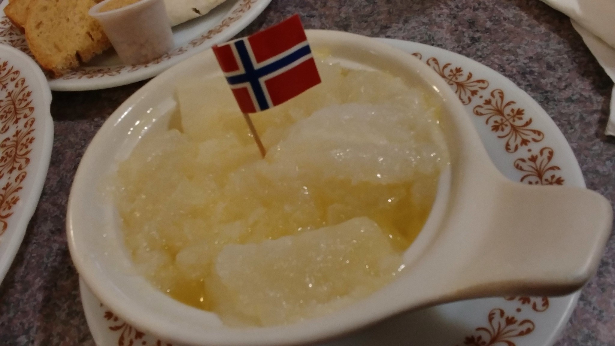And lefse, and gjetost, and Julekaka and gamalost and fattimand and sandbakkels and pickled herring and trollkrem and Kvæfjordkake .