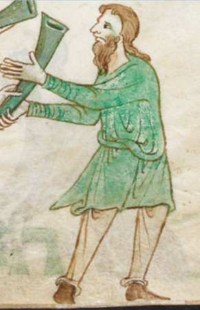 The following image is from Topographia Hiberniae (The Topography of Ireland), Giraldus Cambrensis (Gerald of Wales), 1188. It shows an Irishman dressed in a basic linen shirt (the leine) and a pair of woolen pants (the trius).