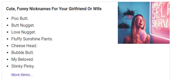 I forgot how old your squeeze is, but maybe Tomb Raider for a pet name since I know how old you are?
