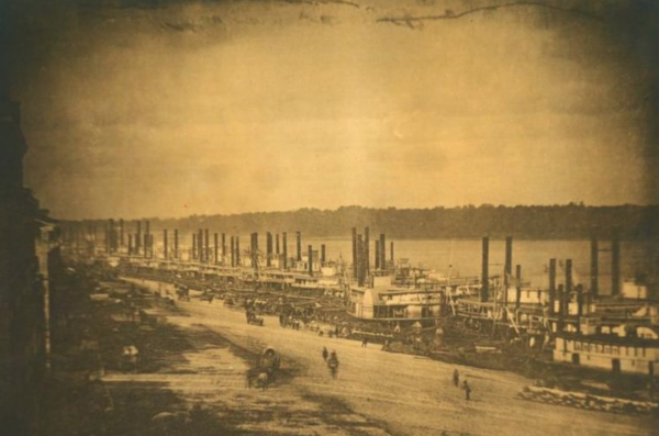 We left [Shawnee] Mound, Tippecanoe County, Indiana, the last of March in a wagon, took a steamboat [to] Attica on the Wabash, and went to Evansville then changed to another boat and went to St. Louis, stayed there a week or two, met an old friend, Rufus Leet, who was making up a company to cross the plains. We bought four mules and outfit. We went up the Missouri River by boat which had many mishaps, but were safely landed at St.Joe. As it was [too] early to start across the plains, we camped there several weeks.