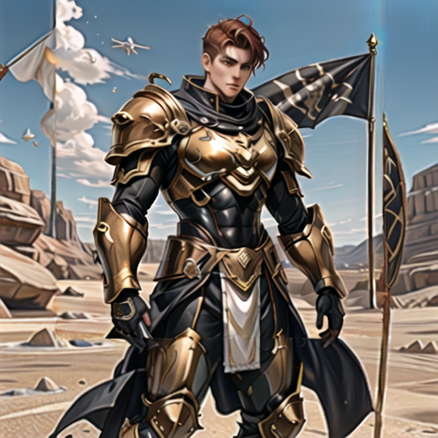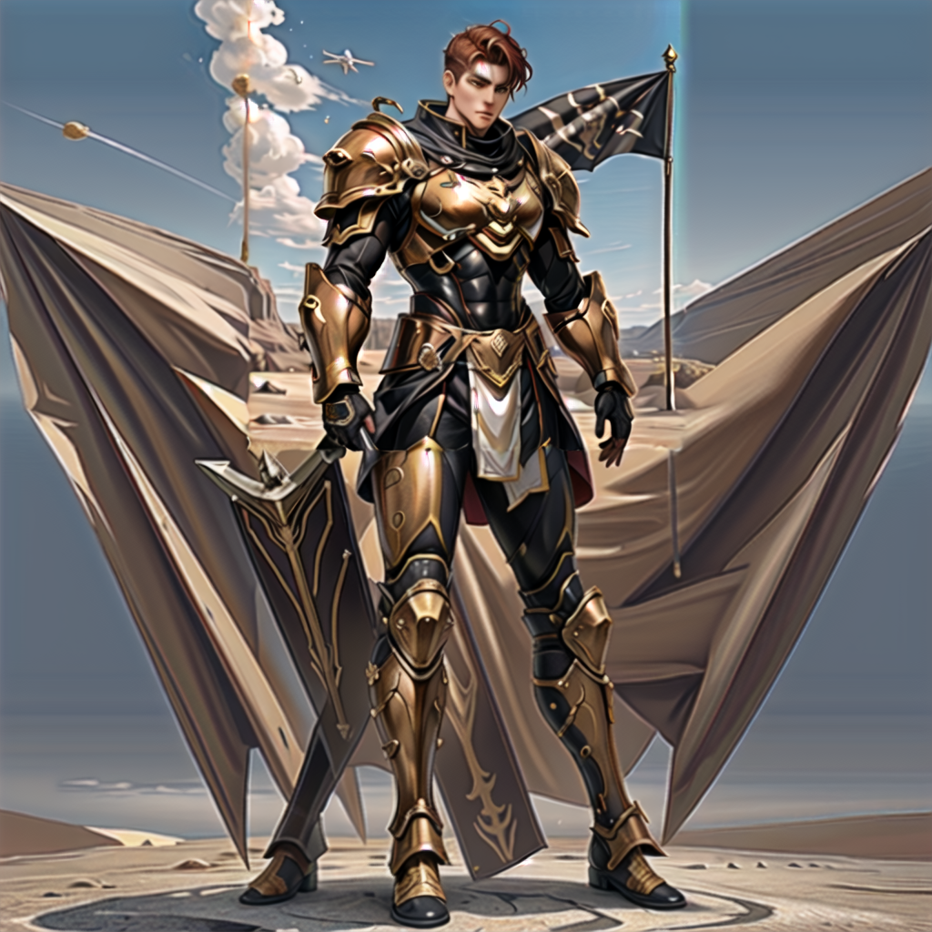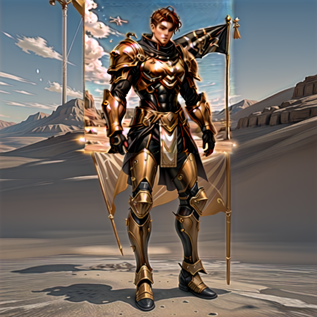 An Image and Mask sounds a lot like what we had from the Inpainting article. In fact, we are going to take over that VAE Encode node with the outputs from the Pad Image. This is still feeding the sampler. I want to change the prompt, because I care about trying to get the legs drawn in. So the positive prompt has been updated to “space marine in desertpunk power armor holding banner, space marine, 1man, solo, red hair, banner:1.5, desertpunk power armor, 1man, solo, loincloth, full body”.