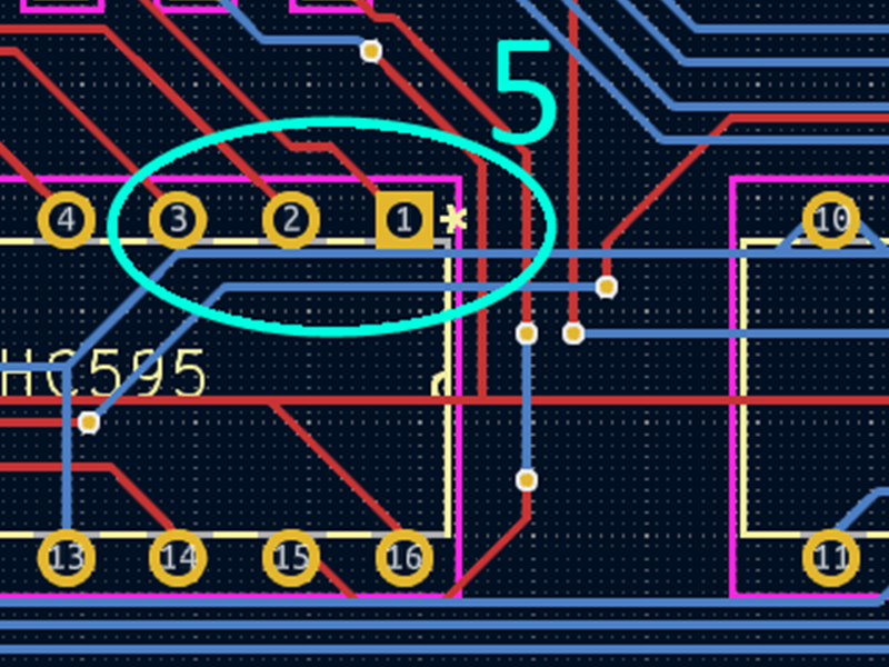Aaand then I made mistake 10. Being a native English speaker, I read numbers with the most significant digit on the left, and think about them that way. So Pin 7 got mapped to the leftmost digit while Pin 1 got the rightmost. Unfortunately, to fill the shift registers with data, I had to send Pin 7 first, so it was supposed to have the Least significant digit. It only took me two rounds of “what is going on here?” to realize my mistake.