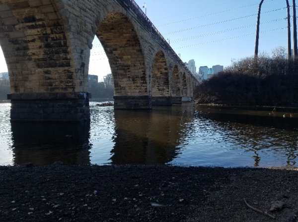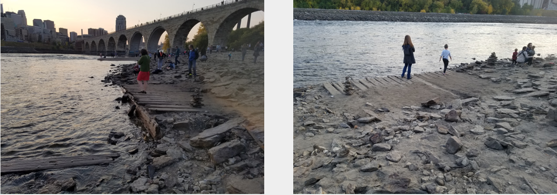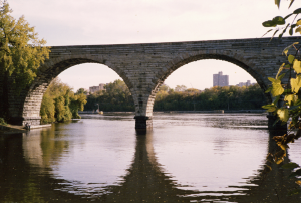 This is the old Stone Arch Bridge. Notice that there are no lights or railings.