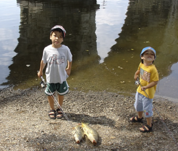 Below you can see a picture of them with a freshly landed double. Altar Boy #2 was so happy with the adulation of the crowd that he forgot how mad he was that his dad had hooked a finger in his belt loop to ensure that the carp didn’t win the battle (most of his chagrin was because his older brother hadn’t been subjected to such indignities). A trip to the SAB would erase months of training at home, the two of them becoming insufferable know-it-alls.