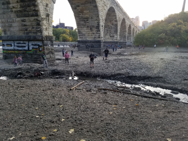 A few years ago The Man decided to do some maintenance on the dam located just above the SAB. To do so, they had to draw down the water. Thousands flocked to the area to see what it was like under the SAB. I was one of them. I thought I’d share some history about the SAB and some pics I took of the area when all the water was gone.