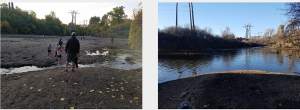 Despite (the real) weirdos milling around, I had a blast walking around the Mississippi bottom. The East end of the SAB is where we did all our fishing. Here is a comparison of it with water and without.