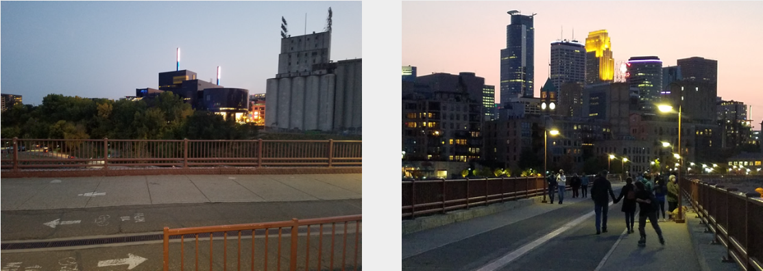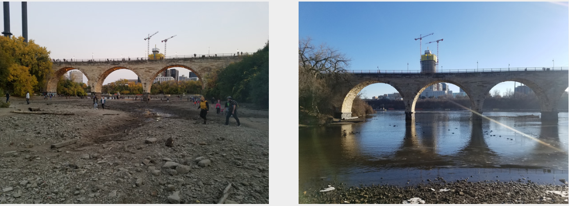 The last two pictures are from the west end of the bridge. That end is right in downtown Minneapolis. The water below was the main channel, so the water level wasn’t drastically different. So instead of boring you with that, I will show a couple of basic tourista shots from that end of the bridge.