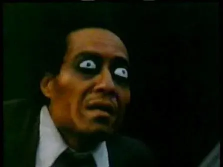 As mentioned above, we have all the best of several B movies here, with supernatural thrills, terrible zombie makeup, gore, gang fights, kung fu, drugs and a lead actor named Warhawk Tanzania! He battles gangsters and the demon with 70’s style and flares. Also included is the occasional wacky – eyed, orange skinned (not who you think it is) zombie. Seriously, look at that. He has zombie eyes painted on his eyelids. It made the zombie walk that much more real because the actor was actually concerned about tripping over curbs or poorly placed props.