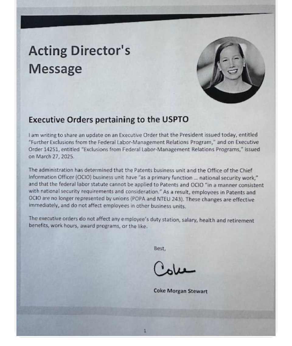 “To whom it may concern: The federal government has hereby ceased all bargaining agreements with public sector labor unions. To petition for pay, benefits, or other terms of employment, please contact your Congressman.”