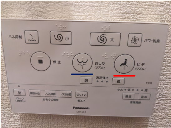 Typical Toilet Control Panel. I added the blue and red lines for emphasis.