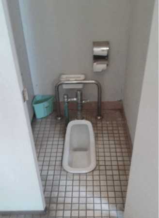 The extra observant will notice that this is the handicapped toilet stall. See that u-shaped railing at the back? This toilet has been replaced. If you went to this park now, all the stalls have normal toilets (with simple ass washing tech) and the handicapped stall has the normal bars and railings.