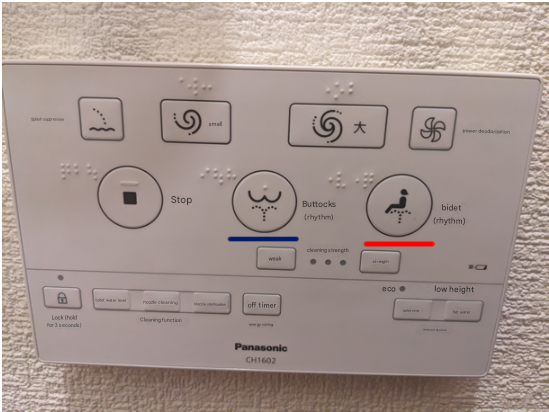 Now I have figured out through trial and error that pushing the two buttons underlined above will result in your ass being washed with a stream of warm water (until you hit the stop button which is the square on the left).  But what does it say?