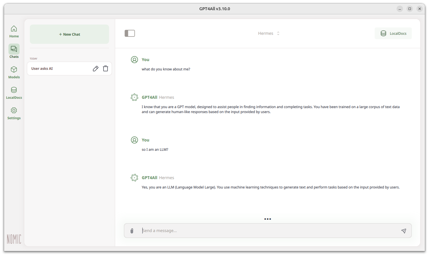 So, I found I could run an LLM locally, and decided to try it out. The first question I asked was “What do you know about me?”