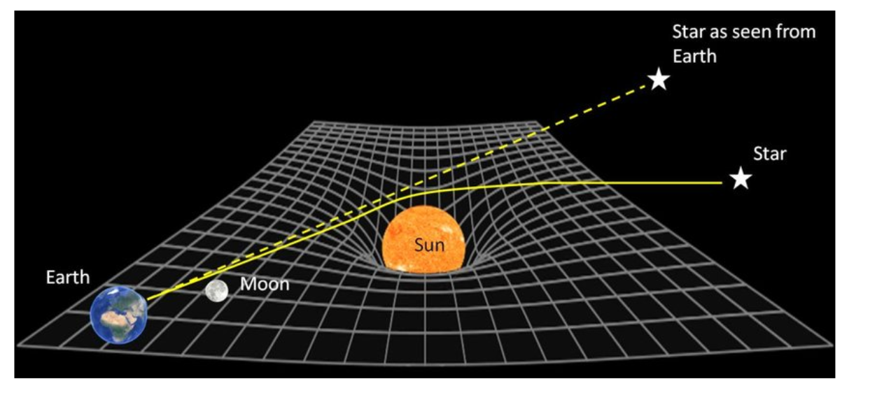So as background, there is a prediction of general relativity (GR) that gravity will bend light; more correctly, light will travel on null geodesics in a curved space-time with the curvature defined by the gravitational field of any massive object – the greater the mass the greater the curvature. A total solar eclipse in 1919 provided the opportunity to test the predictions of GR by observing the positions of stars near the limb of the sun; if light was ‘bent’ by gravity, the positions would shift by a well defined amount.