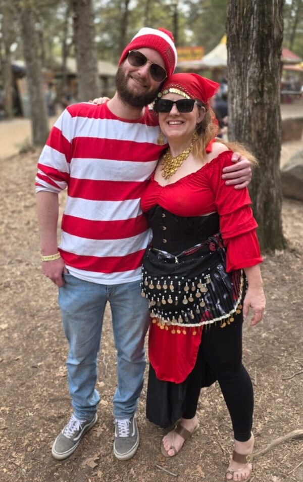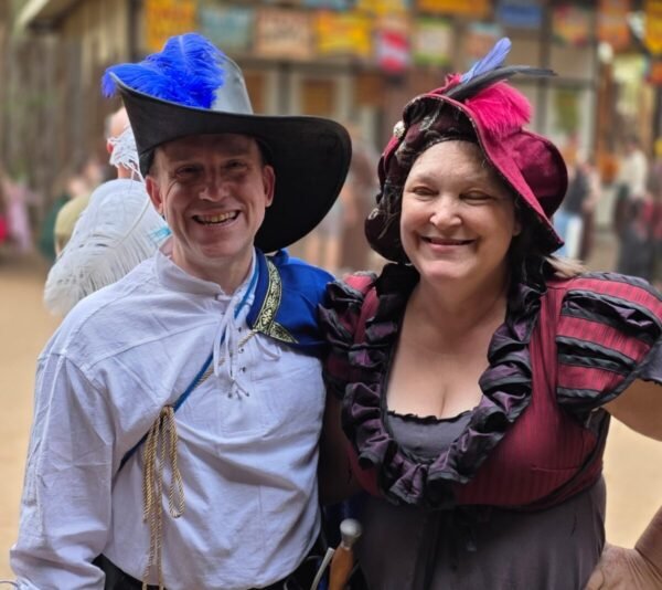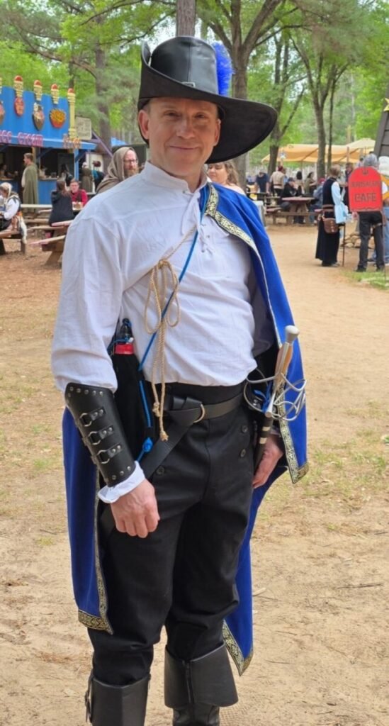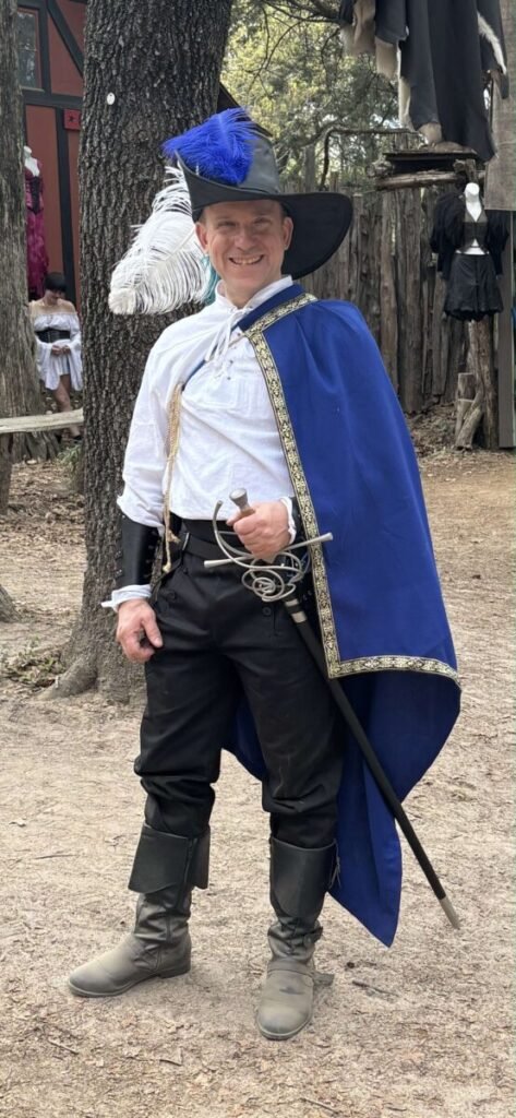 At the end of March I visited my first Renaissance Faire, the Sherwood Forest Faire in McDade, TX. Not counting things like He-Man as a child, I’d been a swords & sorcery fan ever since my father gave me a copy of Piers Anthony’s Crewel Lye: A Caustic Yarn when I was 12 or 13. I’ve also been an off-and-on D&D player, and I’ve gone to a few Gen Cons back around the turn of the century and seen plenty of folks dressed up in costume, so a Ren Faire was always on the old to-do list, eventually. Work and other things just always seemed to get in the way and it was never a high priority to me. Lately the stars are aligning to give me more free time and disposable income, so getting in these bucket-list items is far more feasible. My sister and her husband had been to this particular faire before and it took no arm-twisting on their part to convince me to join them, and even to assemble a costume to wear.